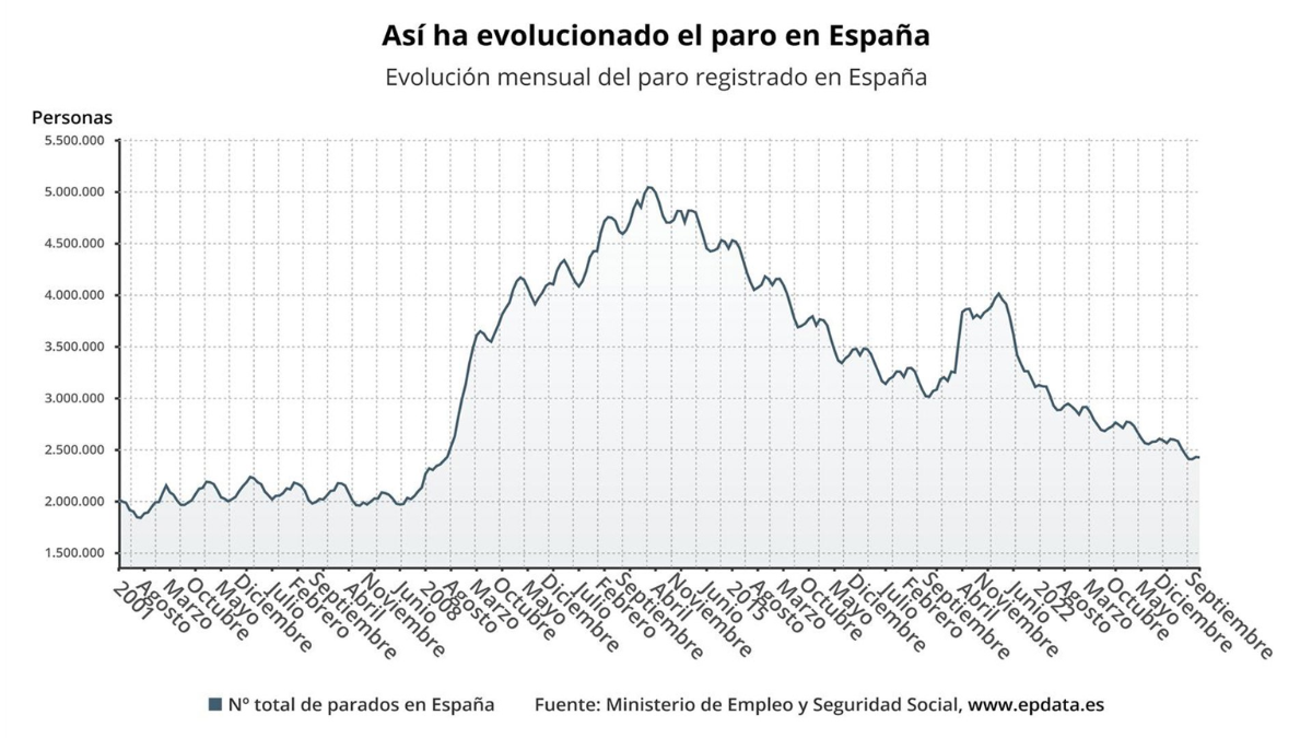 Septiembre fue el primero en descender en este mes desde 2007, salvo en 2020 y 2021, años condicionados por la pandemia. Entonces el paro bajó en 26.329 y 76.113 personas, respectivamente, según informa Europa Press.
