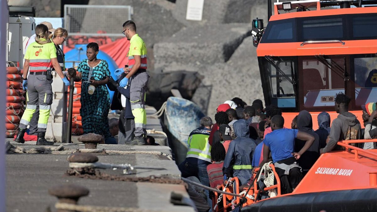 Los servicios sanitarios atienden a migrantes llegados en cayuco a Puerto Naos, a 28 de diciembre de 2024, en Arrecife, Lanzarote, Canarias. | EP
