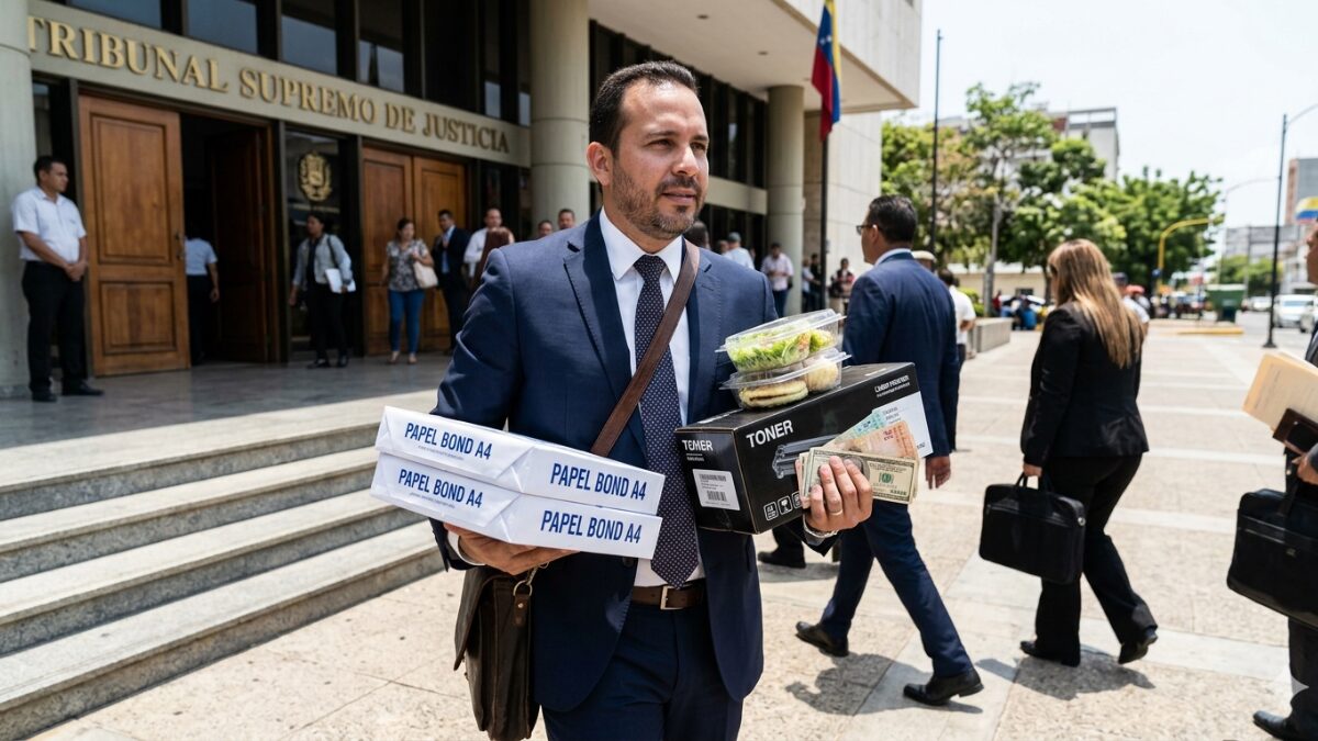 La extorsión logística se hace presente cuando la carencia de insumos se usa como excusa para el retardo dirigido específicamente contra los casos de la defensa privada. Si el abogado no provee el tóner o el papel, el proceso se detiene; si lo provee y su cliente es condenado, la humillación es doble. Es un círculo vicioso donde el ejercicio privado del derecho se vuelve oneroso y condicionado por una administración pública desertora.