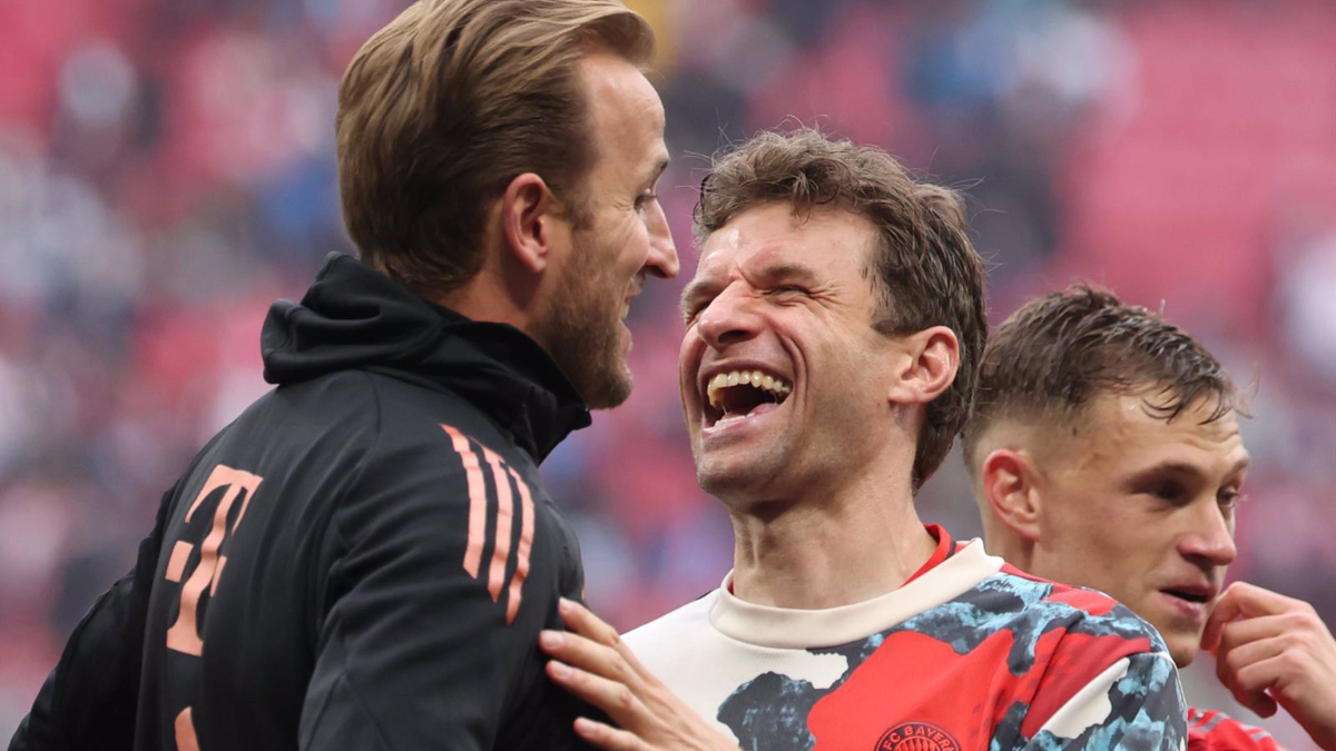Los de Kompany se quedaron a un punto de ganar la Bundesliga este sábado, con un empate in extremis del RB Leipzig. Kane, sancionado, bajó al césped para celebrarlo pero al Bayern se le escapó con el 3-3 de Yussuf Poulsen en el minuto 95. La espera no fue ya mucho mayor para el inglés. Pese a los destellos de Florian Wirtz, el Bayer no pudo alargar las cuentas y el Bayern salió campeón este domingo vestido de gala para celebrar.