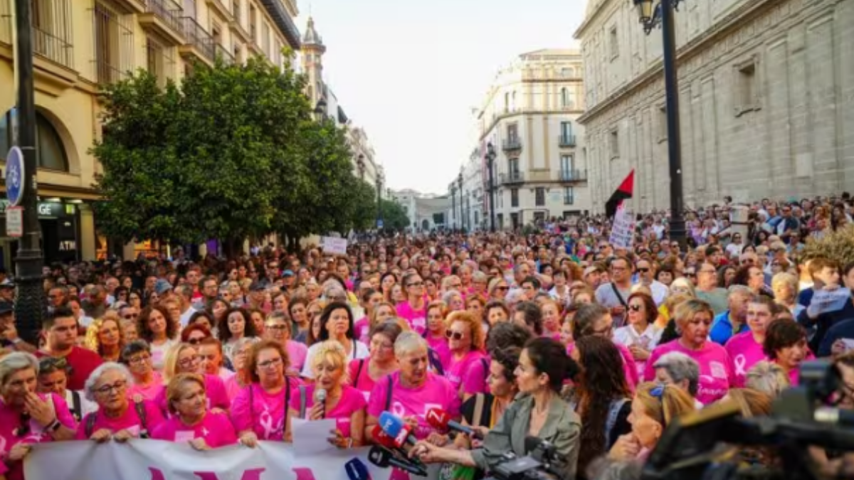 Miles de personas salieron este miércoles a las calles de Sevilla para exigir responsabilidades por los fallos en el programa de cribado de cáncer de mama. La Asociación de Mujeres con Cáncer de Mama de Sevilla (Amama) convocó la protesta, que según CC.OO. reunió a unas 5.000 personas. Entre ellas, mujeres afectadas, familiares y personal sanitario, todos bajo un mismo lema: “Nuestra vida no puede esperar”.