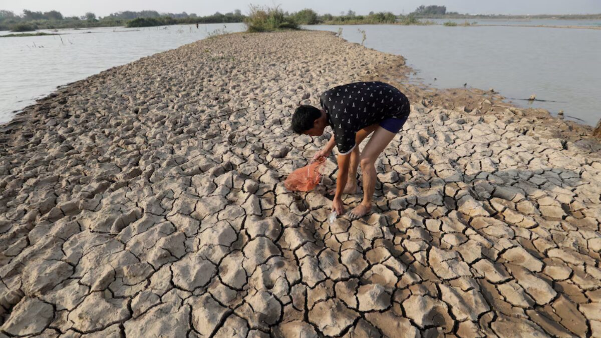 Camboyano cazando un pescado, a las afueras de Nom Pen, Camboya, en medio de una sequía debido a los efectos del fenómeno climático "El Niño" / EFE