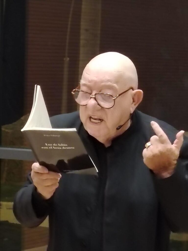 Ante un centenar de amigos, la presentación de la obra corrió a cargo, magistralmente, de su amigo y filólogo Alejandro Simón Partal, que le hizo una entrevista sin tapujos y desgranó las profundidades de algunos poemas de esta nueva obra. También intervino la coral Magnum Misterium.