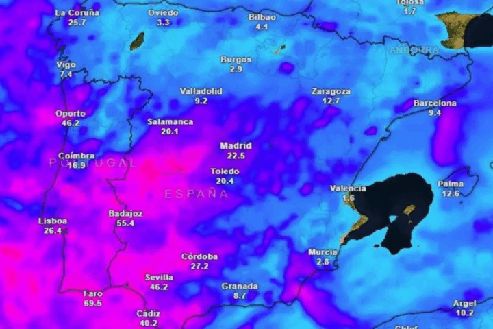 Un chorro polar llega esta semana a España con lluvias intensas y acumulados de hasta 100 litros por metro cuadrado