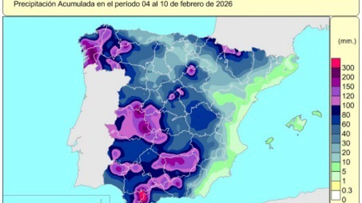 Entre el 4 y el 10 de febrero se vivió uno de los episodios más intensos. Las precipitaciones fueron abundantes y generalizadas, afectando a casi todo el territorio. Galicia, el sistema Central, el sistema Ibérico, el norte de Extremadura, el Pirineo oscense y amplias zonas de Andalucía superaron los 100 milímetros en pocos días.