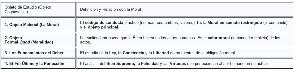 Al igual que una madre que ama a todos sus hijos, la Ética reflexiona sobre diversos objetos cognoscibles, pero la moral es el objeto material principal de su estudio, el más querido y analizado.