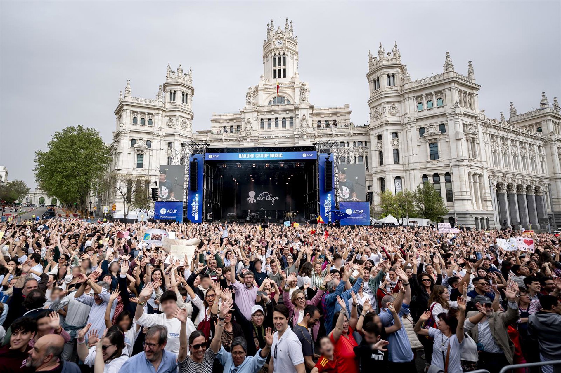 Cientos de personas durante la cuarta edición de la Fiesta de la Resurrección, en la Plaza Cibeles de Madrid. / Fuente: Europa Press