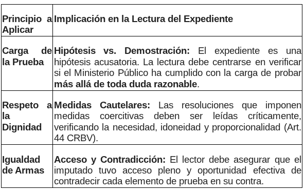 Para que un expediente respete la CRBV, el lector debe adoptar una óptica de neutralidad activa, negándose a aceptar las afirmaciones de culpabilidad sin un respaldo probatorio contundente, y reemplazando el «criterio de condena» por el deber de verificar la destrucción de la inocencia.