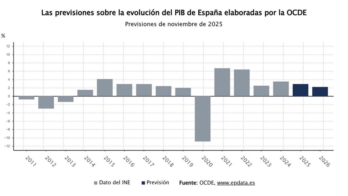 La Organización para la Cooperación y el Desarrollo Económico revisa al alza el crecimiento de España: 2,9% en 2025 y 2,2% en 2026