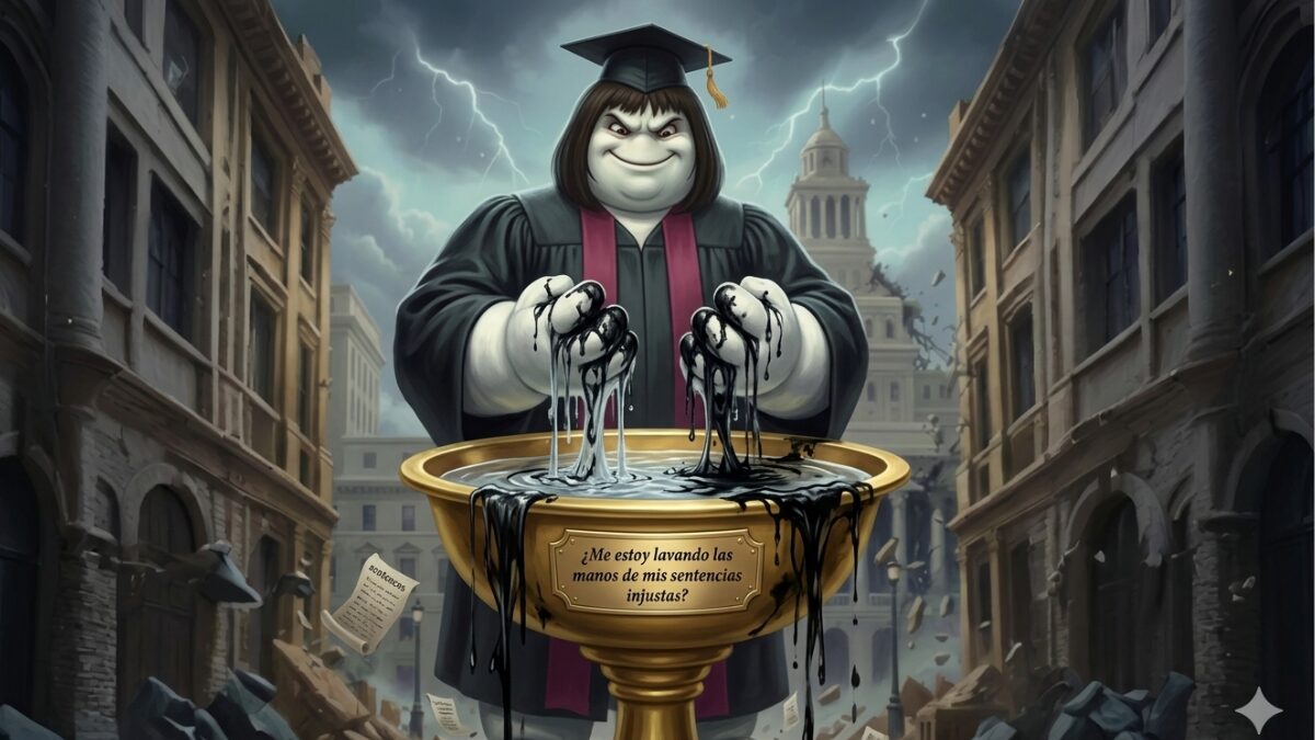 La técnica del «lavado de manos» que aplica María Pilatos posee fecha de caducidad inmediata, pues la sociedad ya ha identificado el recipiente donde vierte su desidia y su falta de carácter. No existe sentencia, por más que se adorne con retórica legalista, que pueda ocultar la ausencia de motivación real y el abuso de poder que caracteriza su despacho, donde la norma es un simple pretexto y no un fin en sí mismo. El renacer de la voluntad de justicia se está levantando como una marea incontenible para señalar su prevaricación ante el mundo. Las consecuencias de sus actos serán tan visibles como las llagas de los condenados injustamente, y su defensa resultará tan vana como la de aquel gobernador que pretendió culpar a la multitud por su propia debilidad de espíritu. Ella es la autora intelectual de su propia ruina, rubricada con cada sentencia dictada sin el rigor que la ética profesional exige a quien porta la investidura magistral.