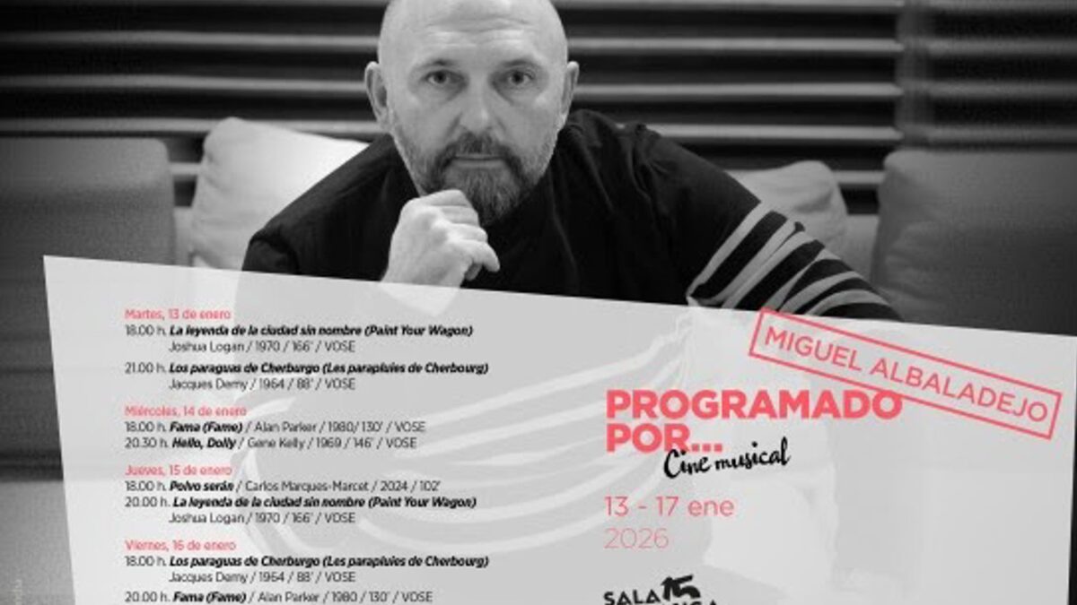 Bajo el título Programado por… Miguel Albaladejo. Cine Musical, el ciclo se celebrará del 13 al 17 de enero en la Sala Berlanga, en Madrid. Albaladejo ha seleccionado seis películas que, lejos de seguir un criterio académico estricto, responden a su relación emocional y creativa con el género.