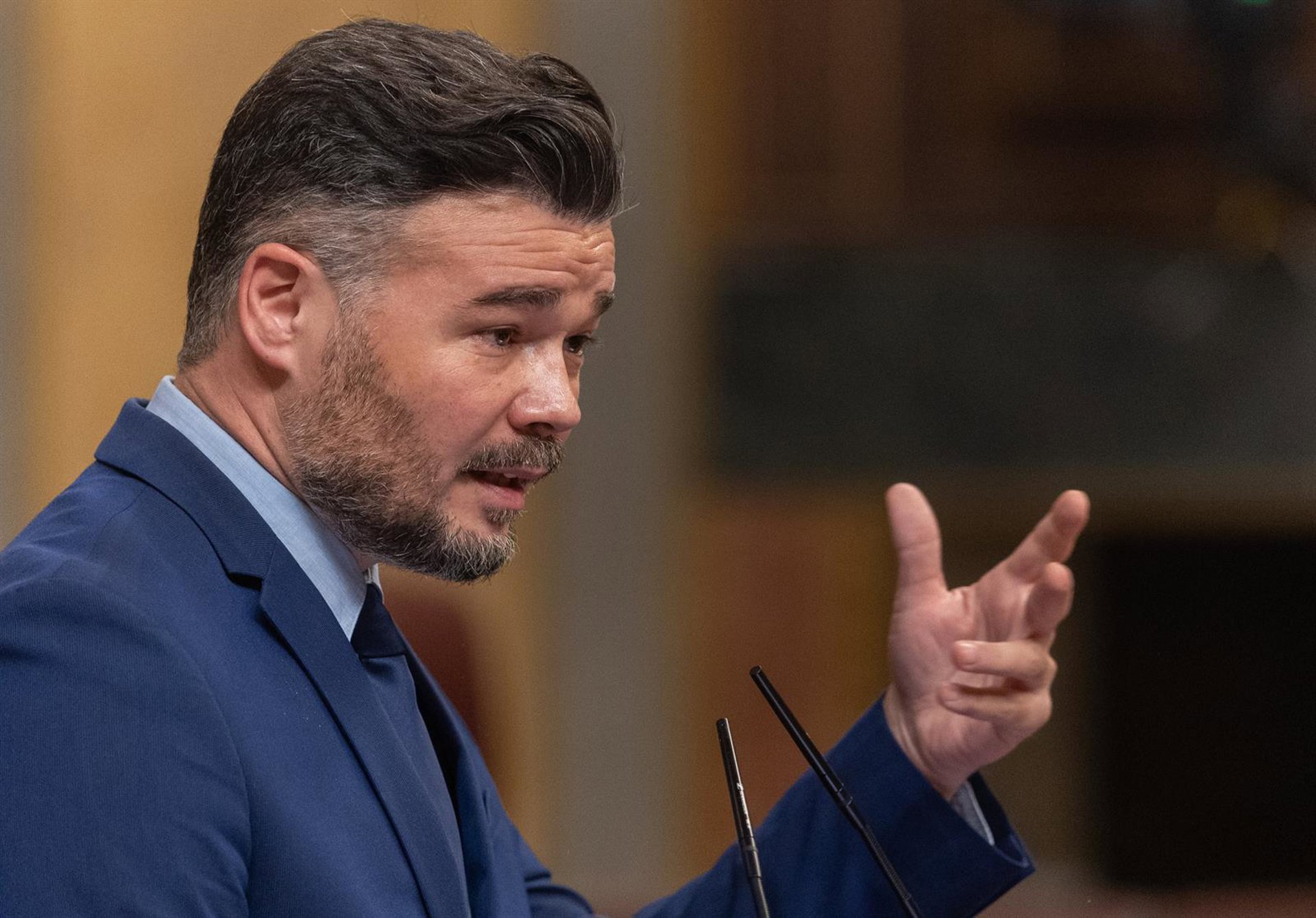09/04/2025 El portavoz de ERC en el Congreso, Gabriel Rufián, interviene durante una sesión plenaria en el Congreso de los Diputados, a 9 de abril de 2025, en Madrid (España). El Gobierno afronta hoy en el Congreso una ofensiva parlamentaria tanto de los partidos de la oposición, PP y Vox, como algunos de los socios del Ejecutivo, Junts, PNV y Podemos, por los efectos de los aranceles anunciados por el presidente norteamericano; las polémicas palabras de la vicepresidenta primera y ministra de Hacienda sobre la presunción de inocencia tras la sentencia del futbolista Dani Alves y los impuestos del Ejecutivo. POLITICA Eduardo Parra - Europa Press