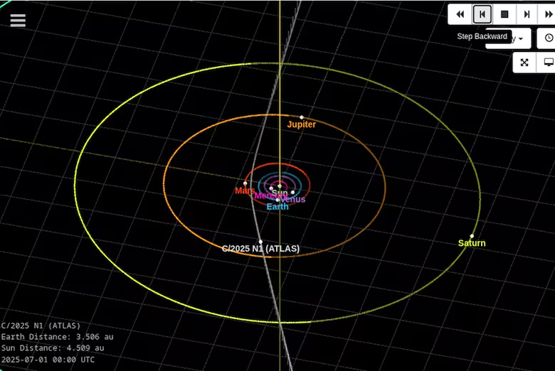 Trayectoria del cometa interestelar 3I/ATLAS / NASA