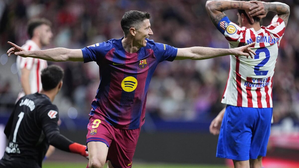 El FC Barcelona logró una victoria clave (1-2) ante el Atlético de Madrid en el Riyadh Air Metropolitano, en un duelo intenso correspondiente a la jornada 30 de LaLiga. El conjunto azulgrana remontó en los minutos finales con un gol afortunado de Robert Lewandowski, después de que Giuliano Simeone adelantara a los locales y Marcus Rashford igualara rápidamente el marcador.