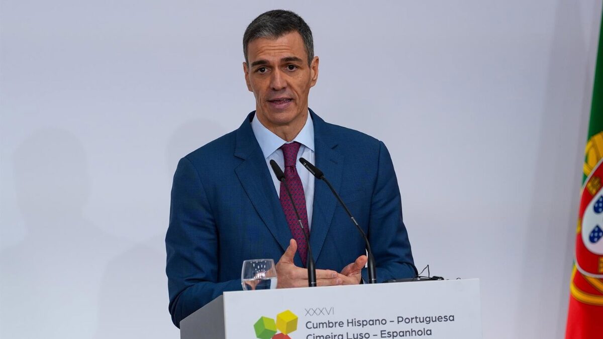 Comparecencia del presidente del Gobierno, Pedro Sánchez, ante los medios de comunicación durante la XXXVI Cumbre Hispano-Portuguesa. | EP